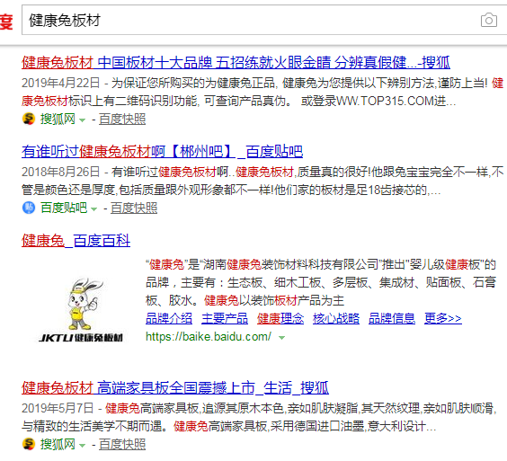 湖南健康兔板材在百度平臺(tái)的品牌現(xiàn)狀
